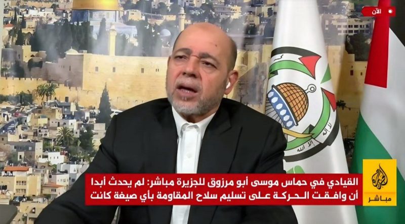 Menurut Abu Marzouk, Hamas tidak pernah sama sekali bersetuju untuk menyerahkan senjata muqawamah dalam apa jua bentuk, sambil menekankan bahawa senjata tersebut merupakan hak sah rakyat Palestin untuk mempertahankan diri daripada penjajahan.